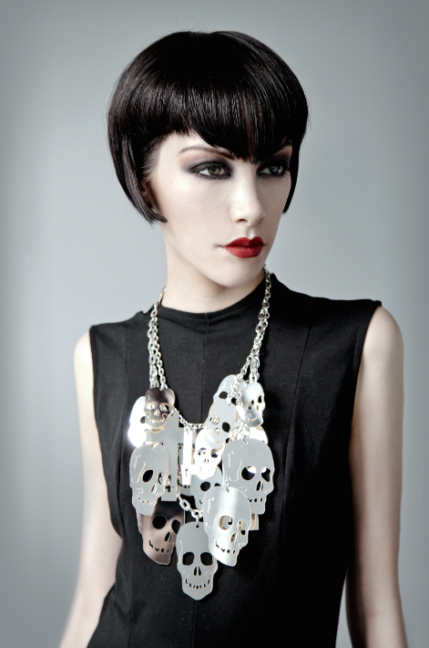 HR SKULL AND CROSS CLUSTER NECKLACE